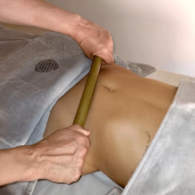 A massagem modeladora com bambu tem o objetivo de ativar a circulação e modelar o corpo, através de manobras firmes e vigorosas, trazendo um contorno corporal mais harmonioso e melhorando o aspecto da celulite, priorizando partes do corpo como abdômen, flancos, culote e glúteos.